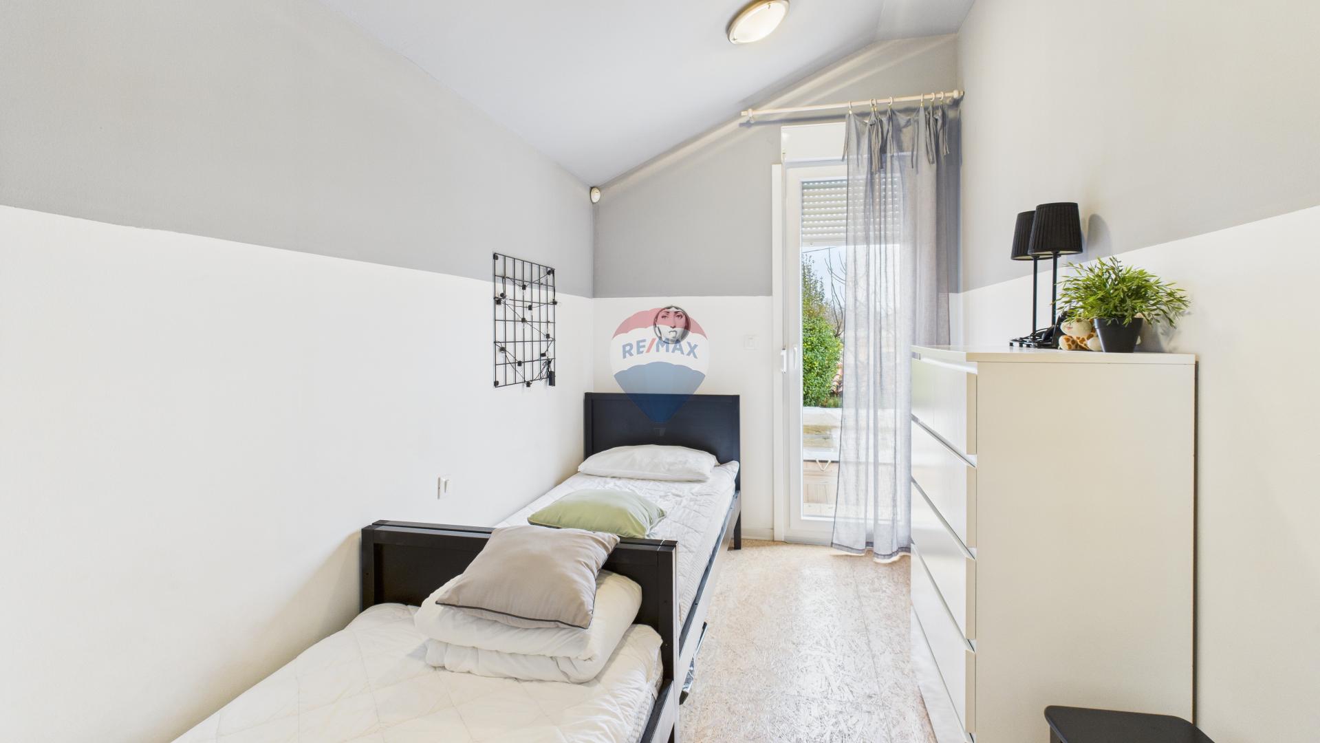 Desni dio kuće čini noćna zona s tri spavaće sobe i dvije kupaonice, pri čemu jedna spavaća soba ima vlastitu kupaonicu, dok su preostale dvije sobe na raspolaganju zajedničku kupaonicu.